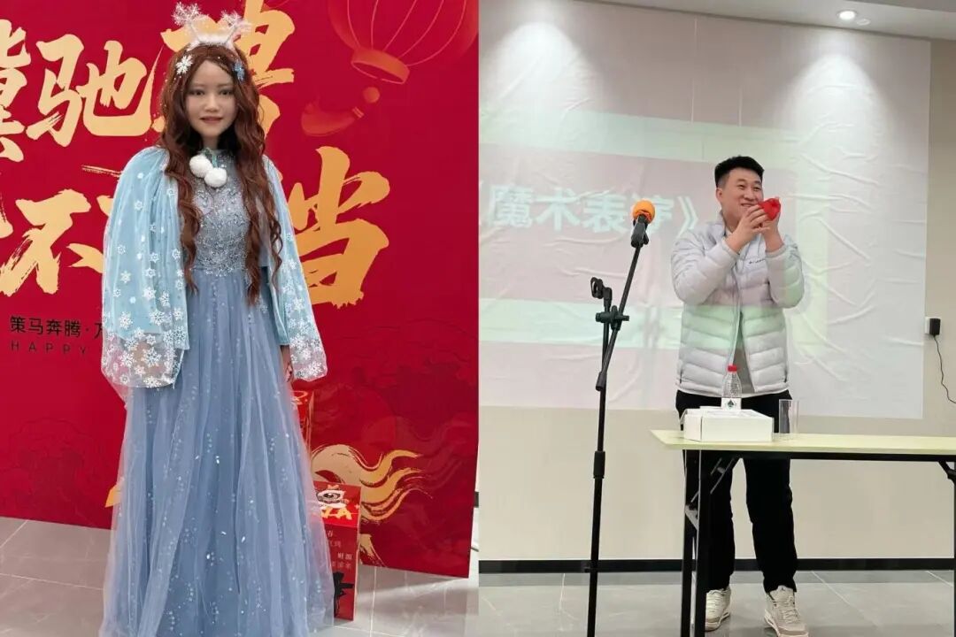常总身着一袭蓝色梦幻礼服惊艳亮相,随后巧妙设计表演了一段主打“反差萌”的脱口秀,令人耳目一新。工程部的刘罡带来的魔术表演更是令人惊叹,他用灵巧的双手和神秘的道具营造出奇幻的视觉效果,让观众目不暇接。